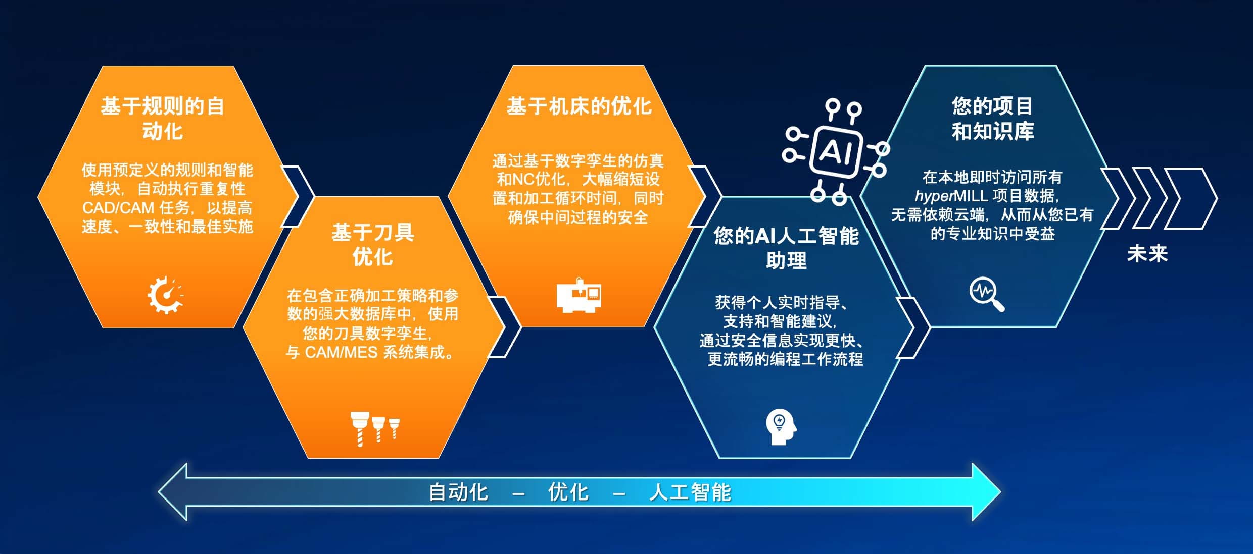其核心在于,hyperMILL INTELLIGENCE 将人类经验与数字智能结合在一起,使客户能够减少重复性工作,专注于推动进步的关键:创新与持续改进。